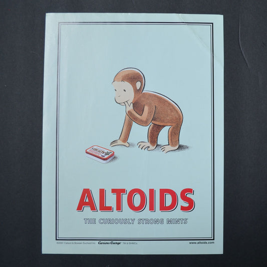 Altoids + Curious George Magazine Ad 2001 Vintage Peppermints Curiously Strong