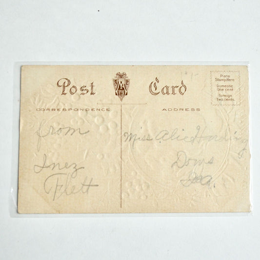 1914 Antique New Year Greetings Postcard Child Door Dog