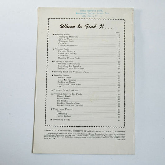 1958 Freezing Foods for Home Use Minnesota Agricultural Extension Service