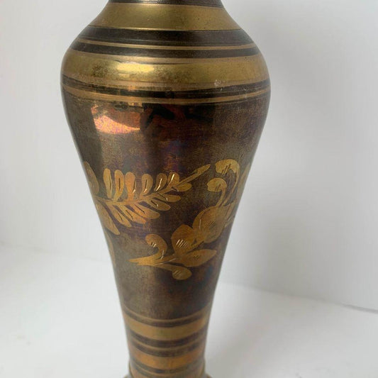 Vintage Etched Brass Tall Vase