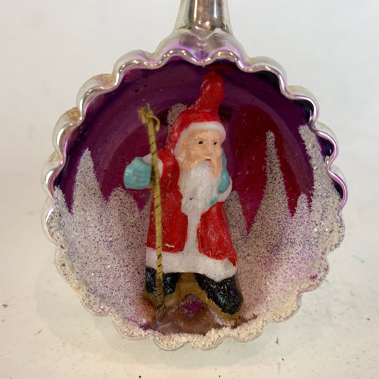 Vintage Glass Diorama MADE IN ITALY Santa RARE Pink Purple Sky Mica