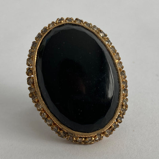 Vintage Gold Onyx Adjustable CZ Stone Ring Estate Find