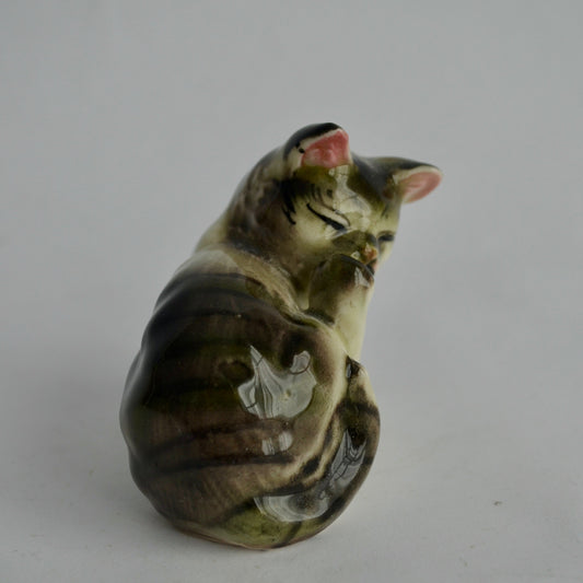Vintage Gray Tabby Ceramic Figurine Japan