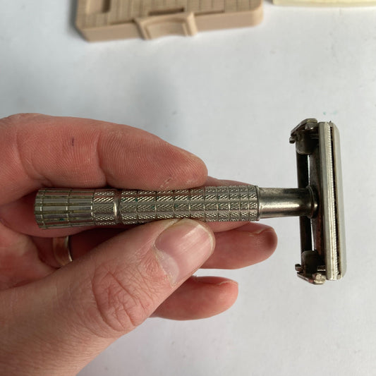 Vintage Gillette Double Edge Safety Razor w/ Case & Blades Metal Shaver