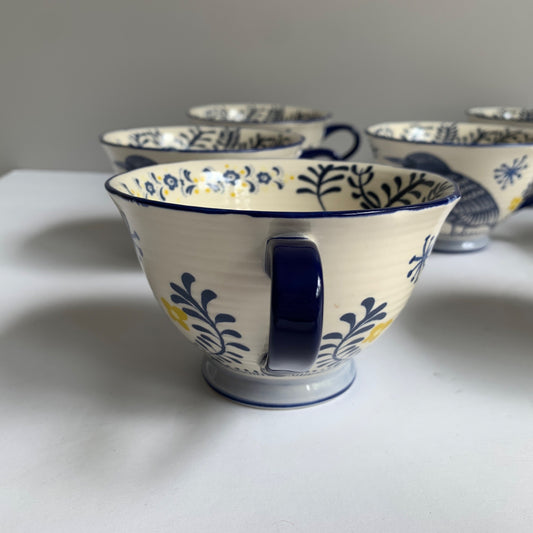 Anthropologie Saga Blue Bird Mugs Set of 7 RARE