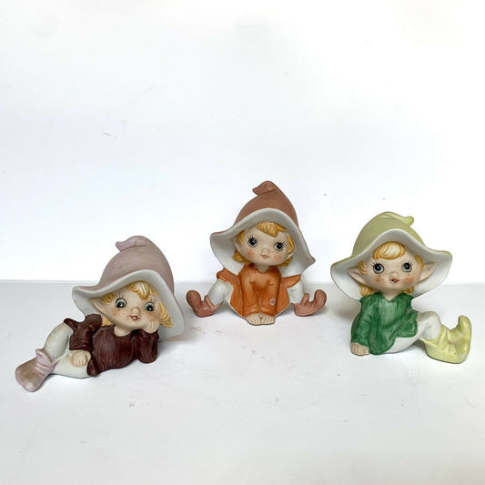 Vintage Homco Pixie Elves Figurine #5213 Set Of 3 Lot