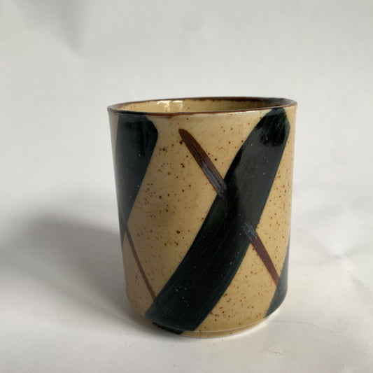 Vintage Japan Brown Cream Speckled Black Stripe Mug