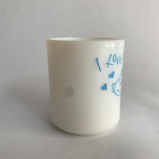 Vintage I Love Grandma Milk Glass Mug White Blue