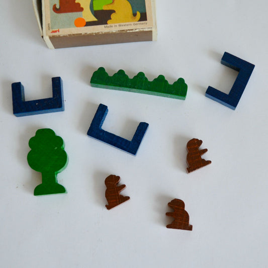 Vintage Juri Matchbox Zoo Toy Apes Wood Block Set Made in West Germany