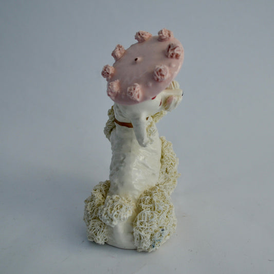 Vintage Japan White Spaghetti Poodle with Pink Umbrella Handpainted