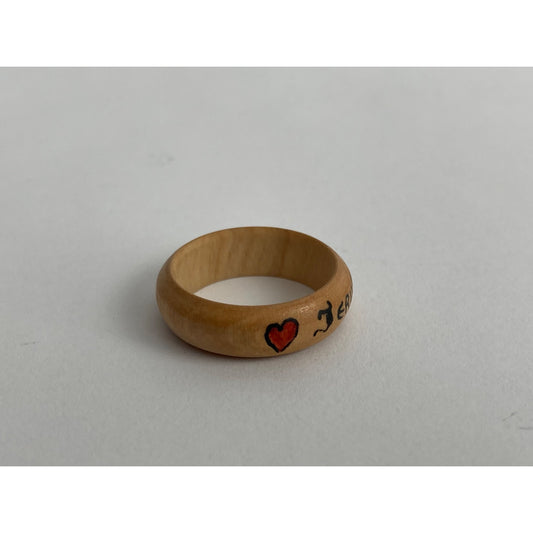 Vintage Jerusalem Heart Wooden Wood Souvenir Ring Size 6