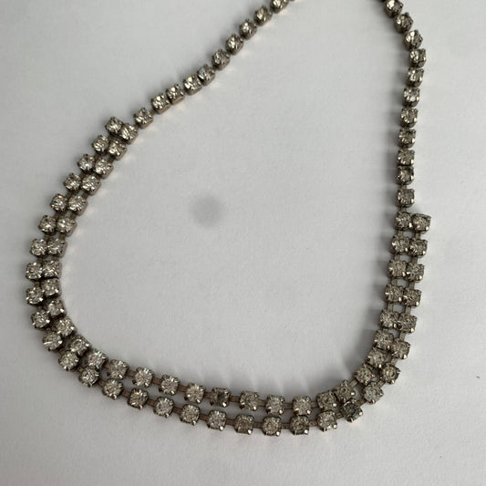 Vintage Rhinestone Double Collar Necklace Choker Silver