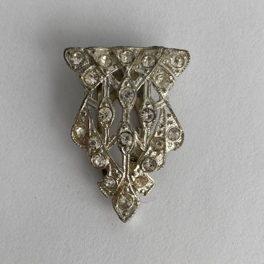 Vintage Rhinestone Art Deco Silver Dress Clip Triangular Prong