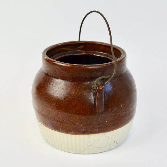 Vintage Red Wing ? Brown Cream Bean Pot Crock Handle NO LID Wire Bail Handle