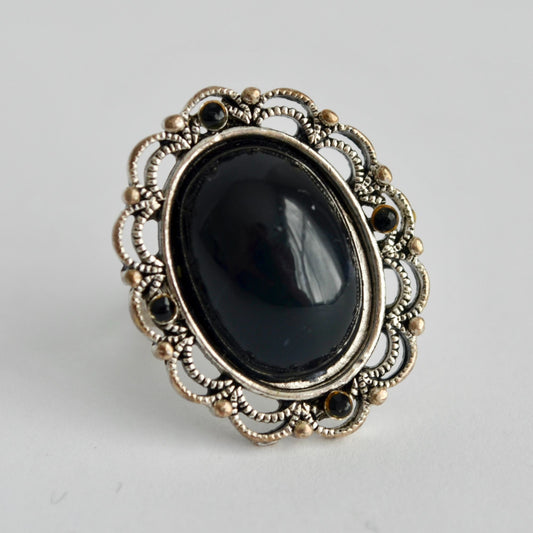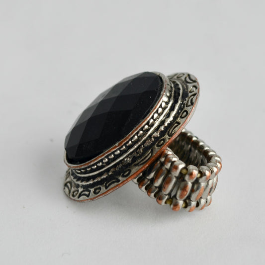 Vintage Silver Onyx Statement Stretch Ring