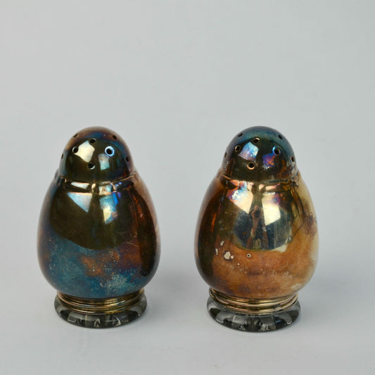 Vintage Silver Plate w/ Glass Inserts Salt & Pepper Shakers Pair