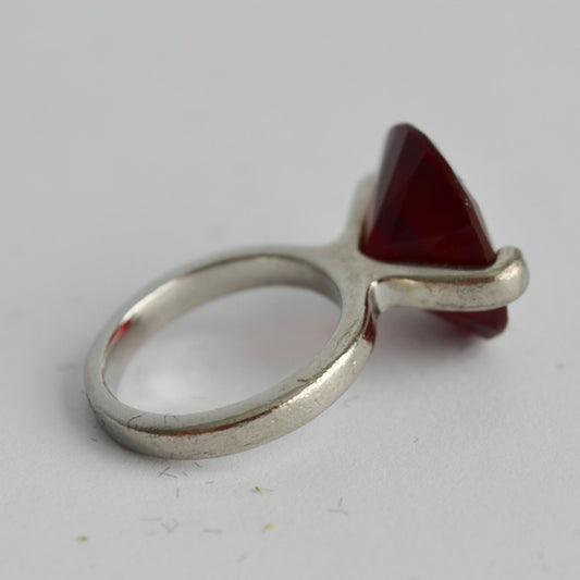 Vintage Silver Ring Large Red Stone Size 5.5