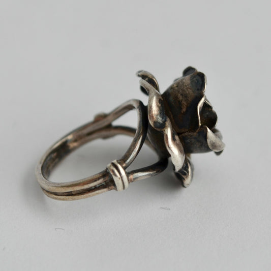 Vintage Sterling Silver ? Rose Ring Size 6.5