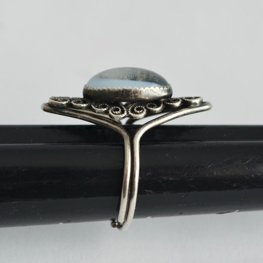 Vintage Sterling Silver Chalcedony Adjustable Ring Cocktail