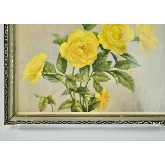 Vintage Yellow Roses Print in Vintage Wooden Frame
