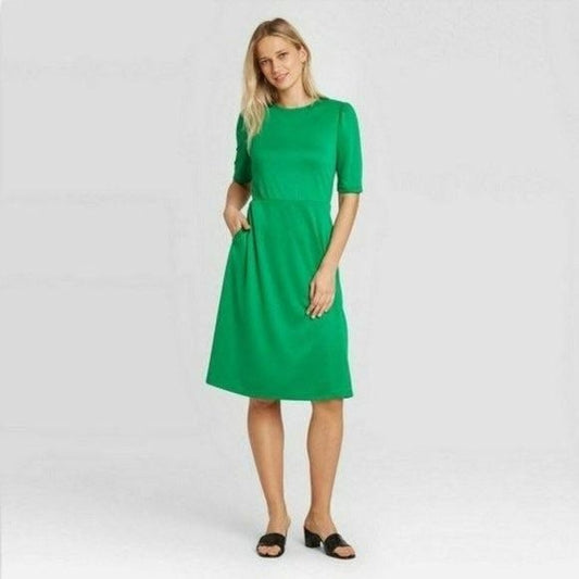 Who What Wear Round Neck Seamed Dress Green