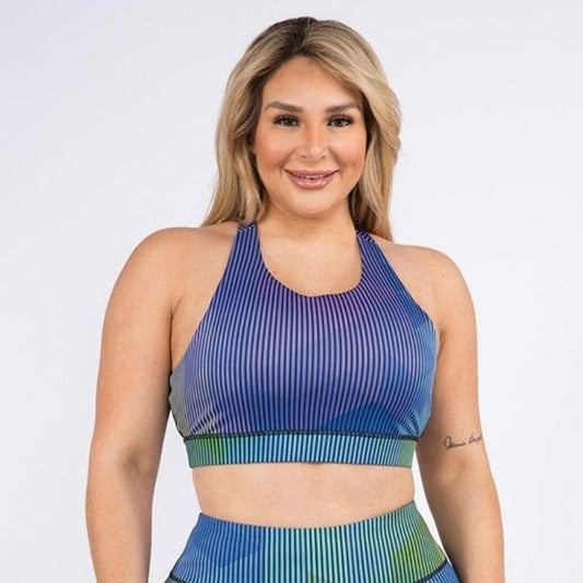 Women's Plus Size Geometric Pinstripe Athletic Sports Bra XL