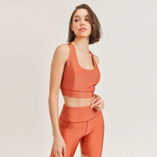 Women's Active Wear Matching Set Biker Shorts and Sports Bra Copper