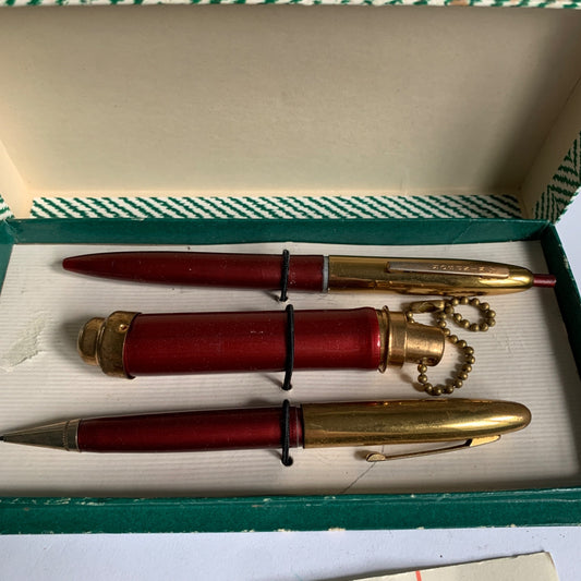 Windsor Pen Set Maroon Gold Vintage In Box with Papers