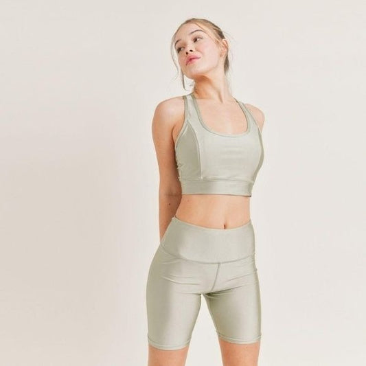 Women's Active Wear Matching Set Biker Shorts and Sports Bra Sage