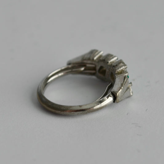 Avon Vintage Ring Silver Green White CZ Size 5.5