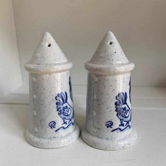 Blue & White Chicken Salt & Pepper Shakers Pair