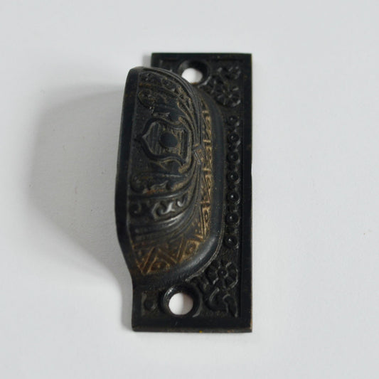 Antique Victorian Ornate Cast Iron Bin Pull Apothecary Cupboard Drawer 2-7/8"