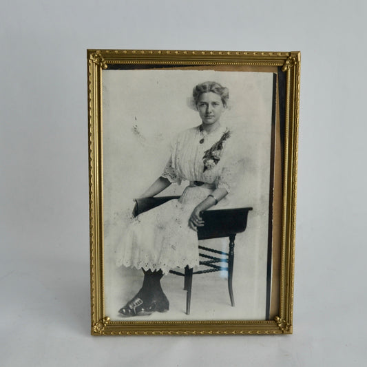 Antique Gold Metal Framed Image of a Young Woman Girl Dated March 31 1912