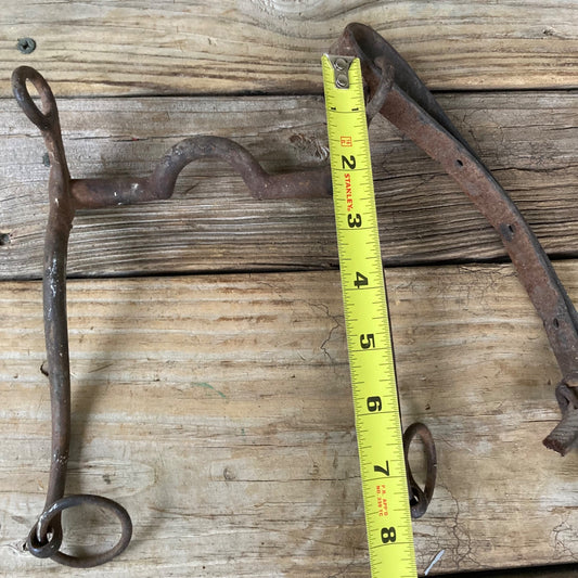 Antique Forged Iron Horse Bit w/Leather Strap Vintage