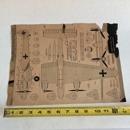 Vintage 1941 George Ross Bomber Fighter Airplane Kit INSTRUCTIONS Messerschmitt