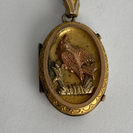 Victorian Antique Gold Rose Bird Locket Pendant Filled