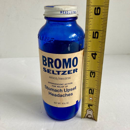Vintage Bromo Seltzer Antacid/Analgesic Blue Bottle Upset Stomachs & Headaches