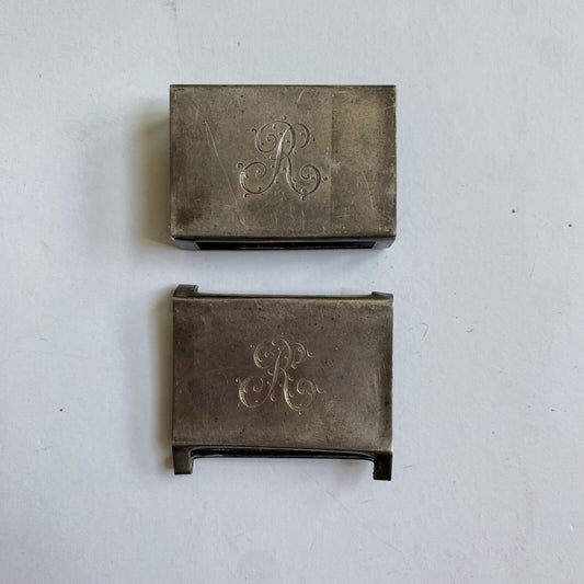 Vintage Sterling Silver Matchbox Holder Engraved "R" Pair of 2 23 grams