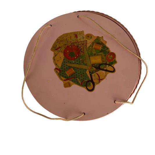 Vintage Pink Round Sewing Basket With Contents Sewing Notions