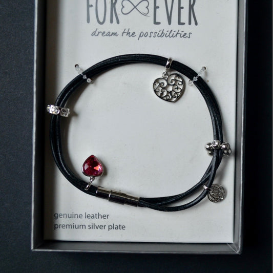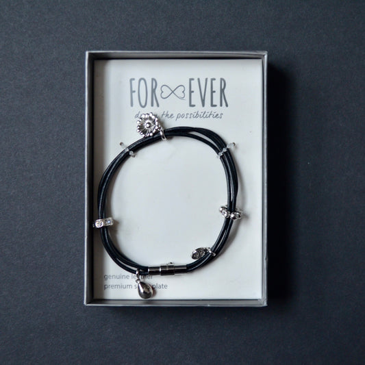 For Ever Genuine Leather Silver Plate Heart Wrap Bracelet New