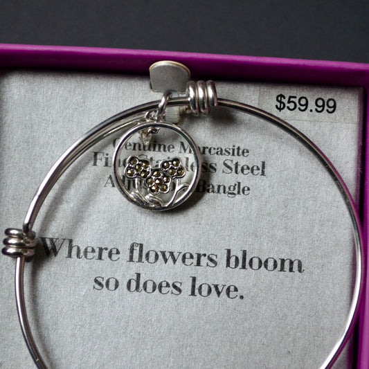 Shine Fine Stainless Steel Adjustable Bangle Flowers Bloom New