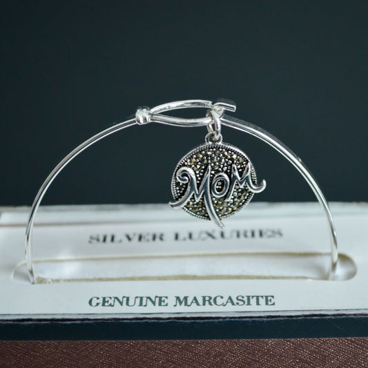 Silver Luxuries Genuine Marcasite Mom Bangle Bracelet New