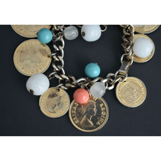 Vintage Bangle Bracelet Traveler's Charms Coins Beaded