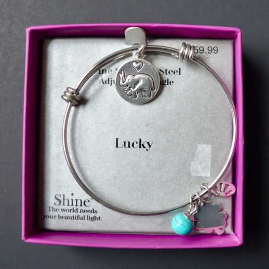 Shine Fine Stainless Steel Adjustable Bangle LUCKY New