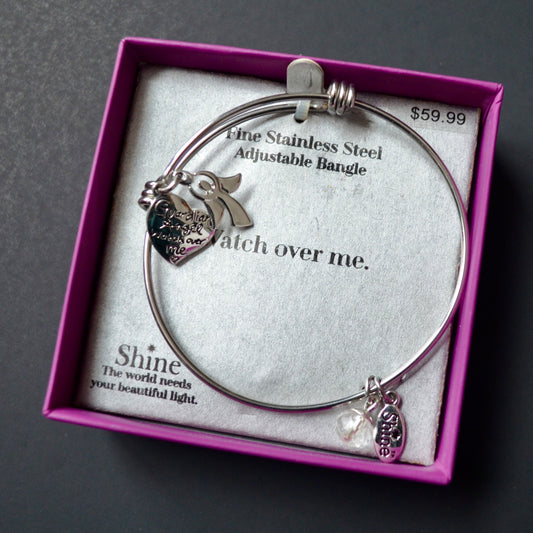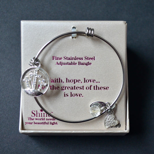 Shine Faith Hope Love Fine Stainless Steel Adjustable Bangle Bracelet New