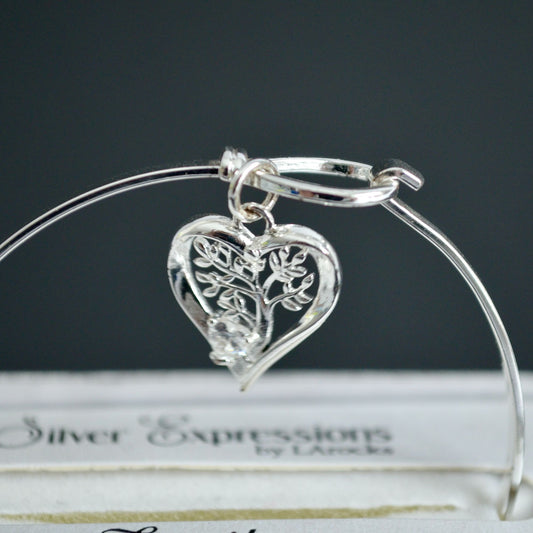 Silver Expressions by LArocks Silver Plated CZ Family Tree Bangle New