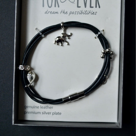 For Ever Genuine Leather Silver Plate Elephant Wrap Bracelet New