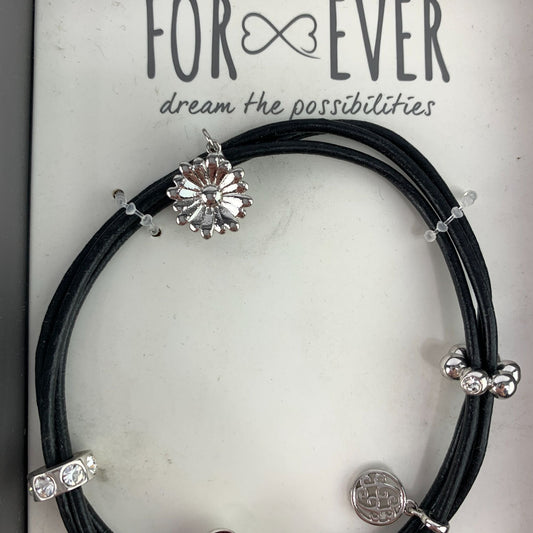 New Silver Genuine Leather Flower Bracelet