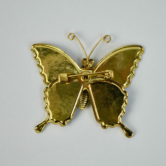 Vintage Butterfly Brooch Gold Toned Brown Rhinestone