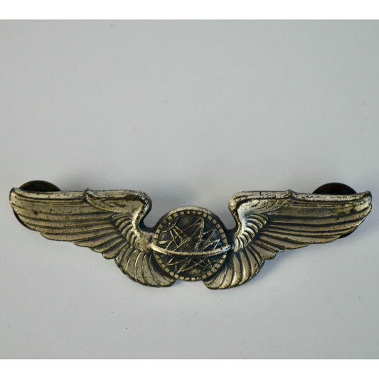 Vintage Silver Pilot Navigator Wings Pin 3" Silver Vietnam Era? Army Air Force